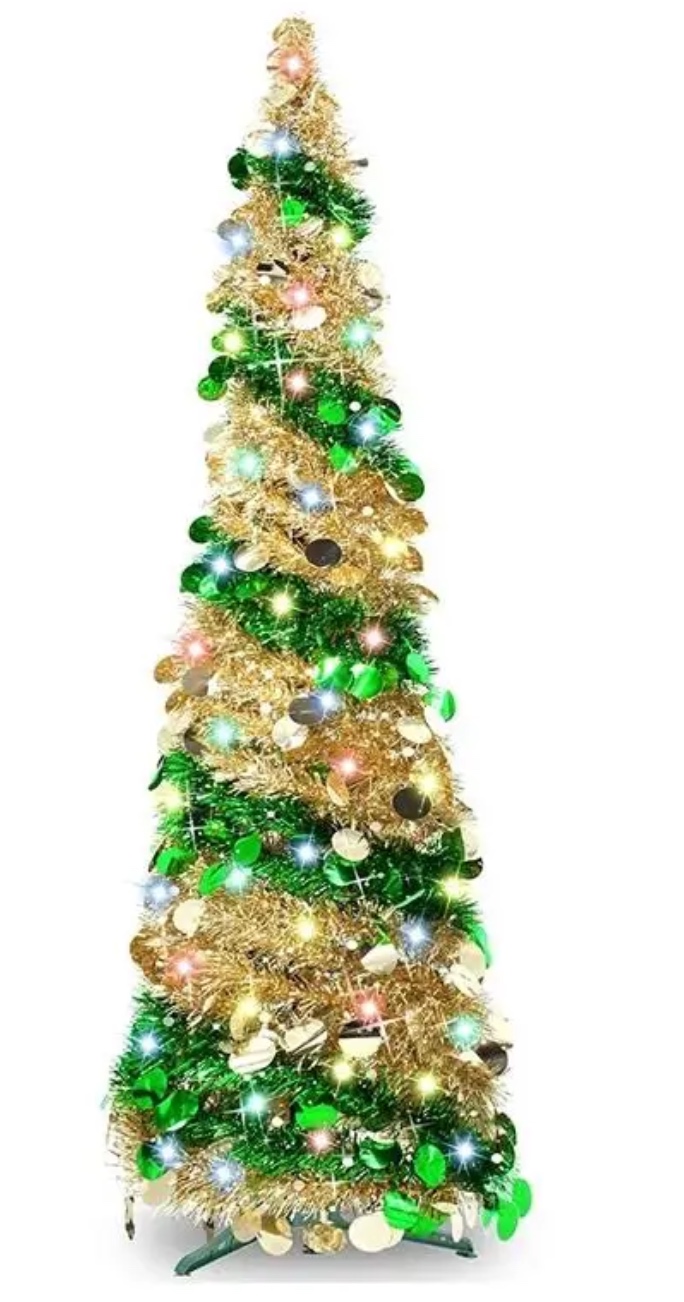 🎄 Árbol Navideño Plegable Pop-Up de 1.50m - Verde y Dorado 🌟
