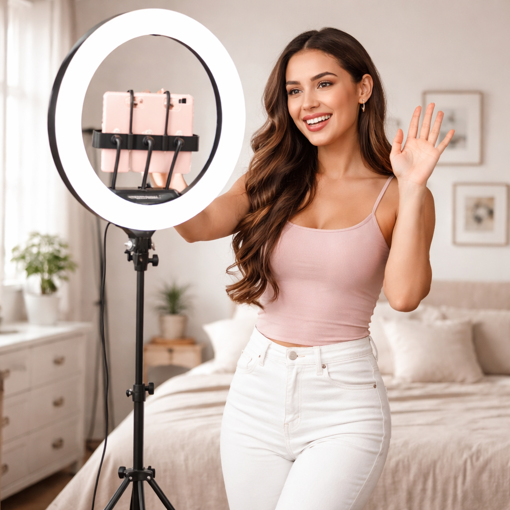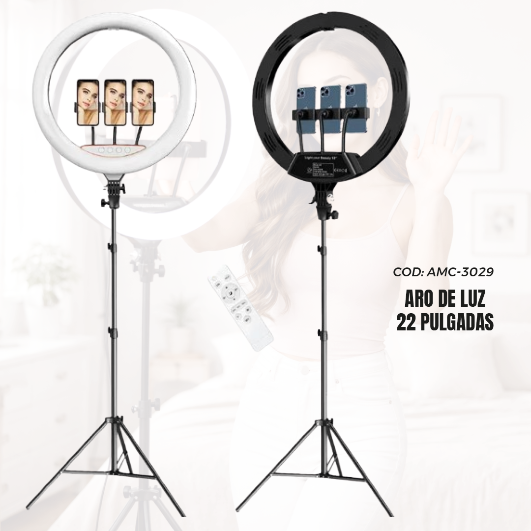 ✅ Aro de gran tamaño (22") que proporciona una luz uniforme y suave, ideal para creadores de contenido 🌟