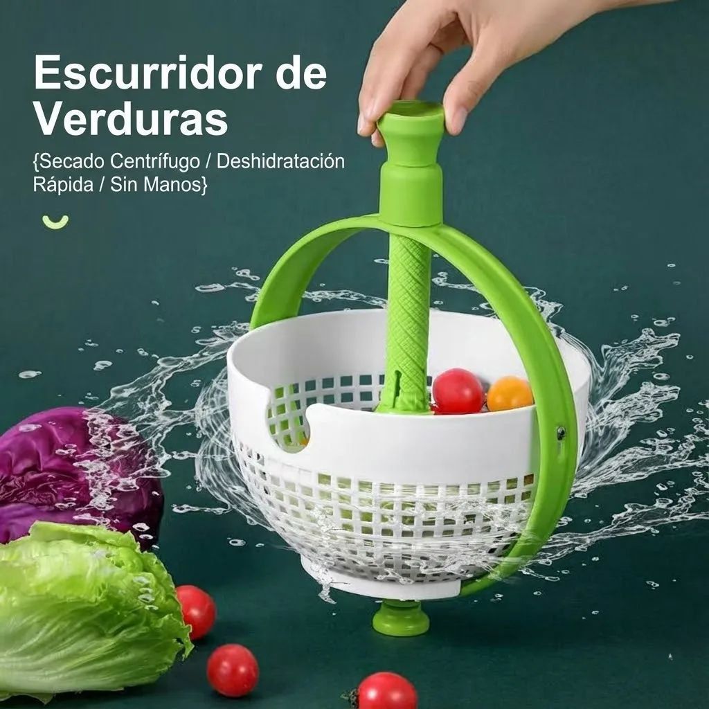 Cuenta con una manija que al girar activa el mecanismo de centrifugado para secar alimentos.