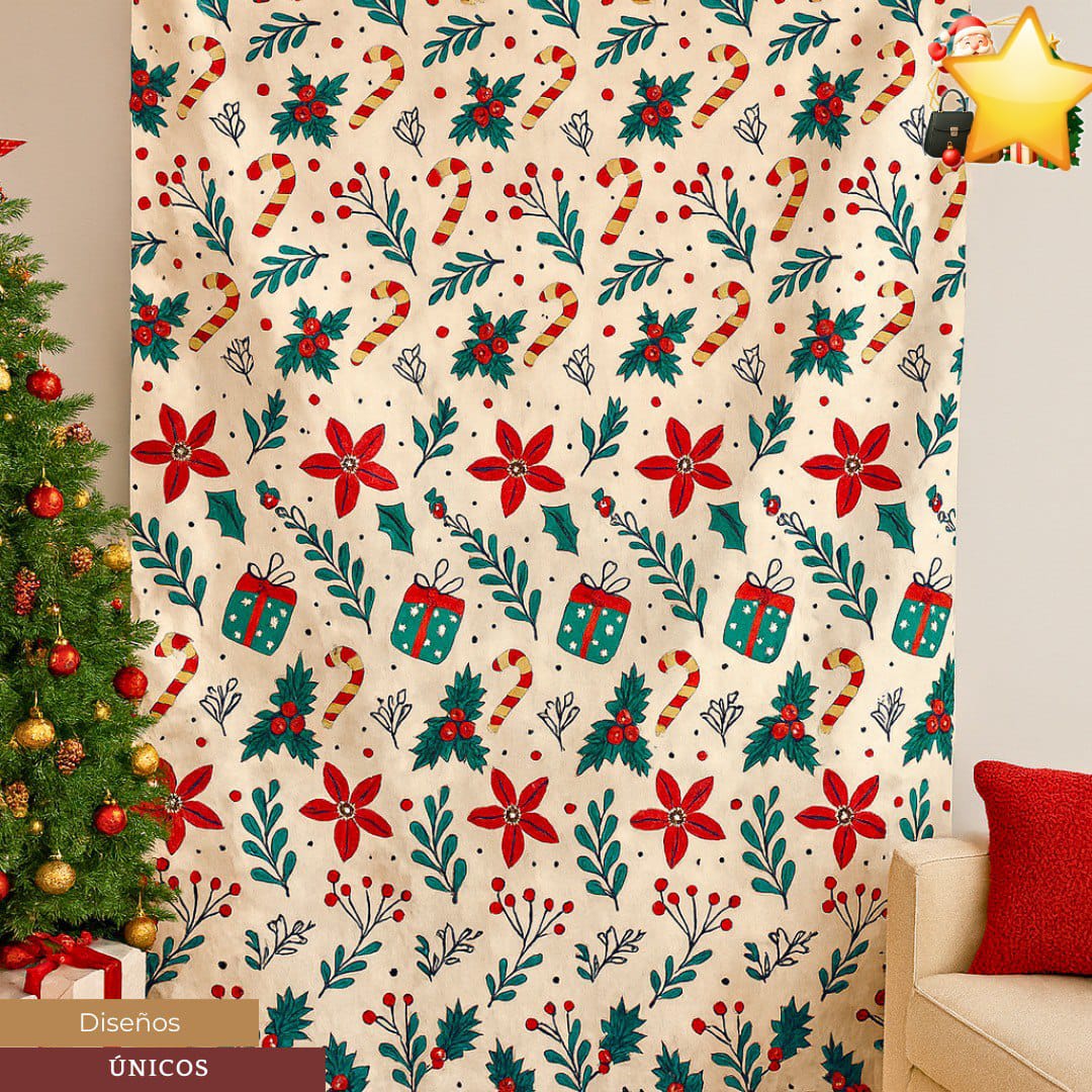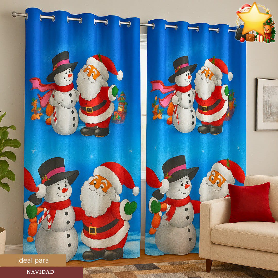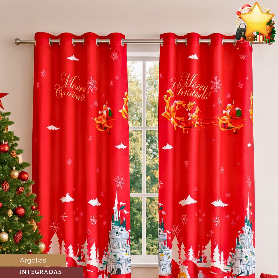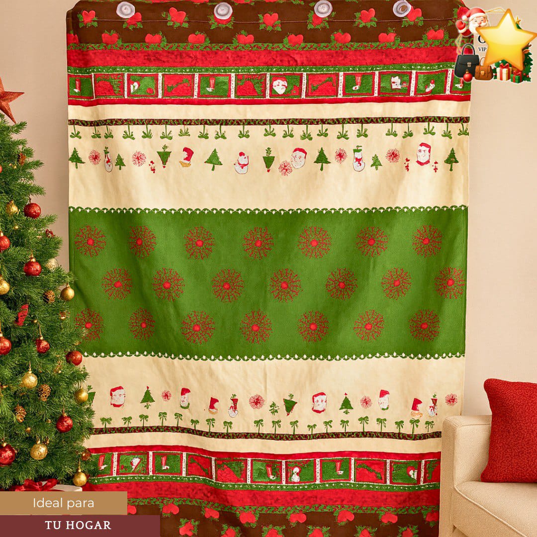 Decora tu hogar con estilo estas cortinas navideñas, ideales para darle un toque festivo a salas, cuartos o vitrinas. Vienen con argollas listas para colgar, ¡fáciles y rápidas de instalar! 🏠🎅