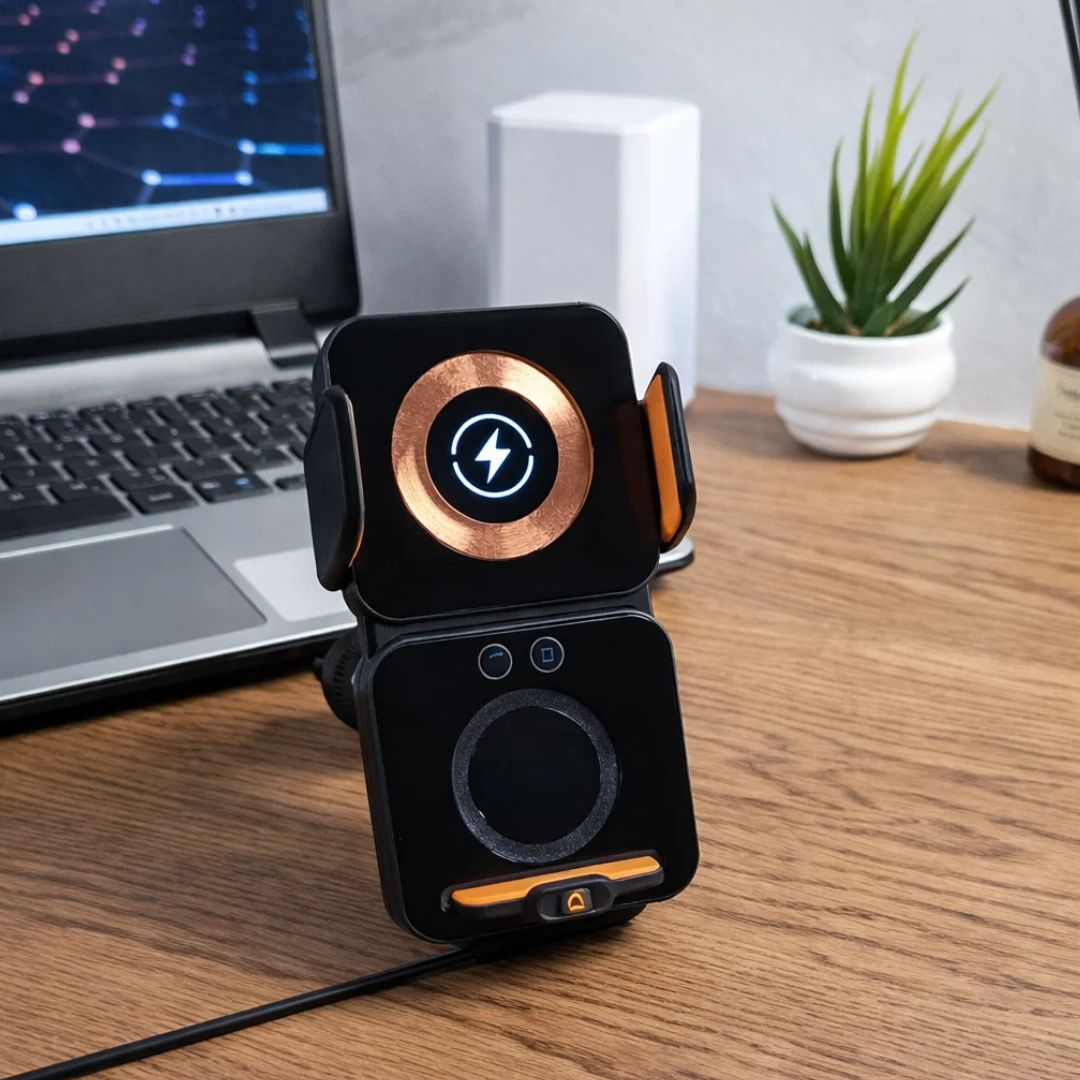 Mantén tu celular seguro, visible y siempre cargado con el Soporte Magnético, una solución moderna que combina sujeción firme y carga inalámbrica rápida en un solo dispositivo. Ideal para conducir con comodidad y sin distracciones.