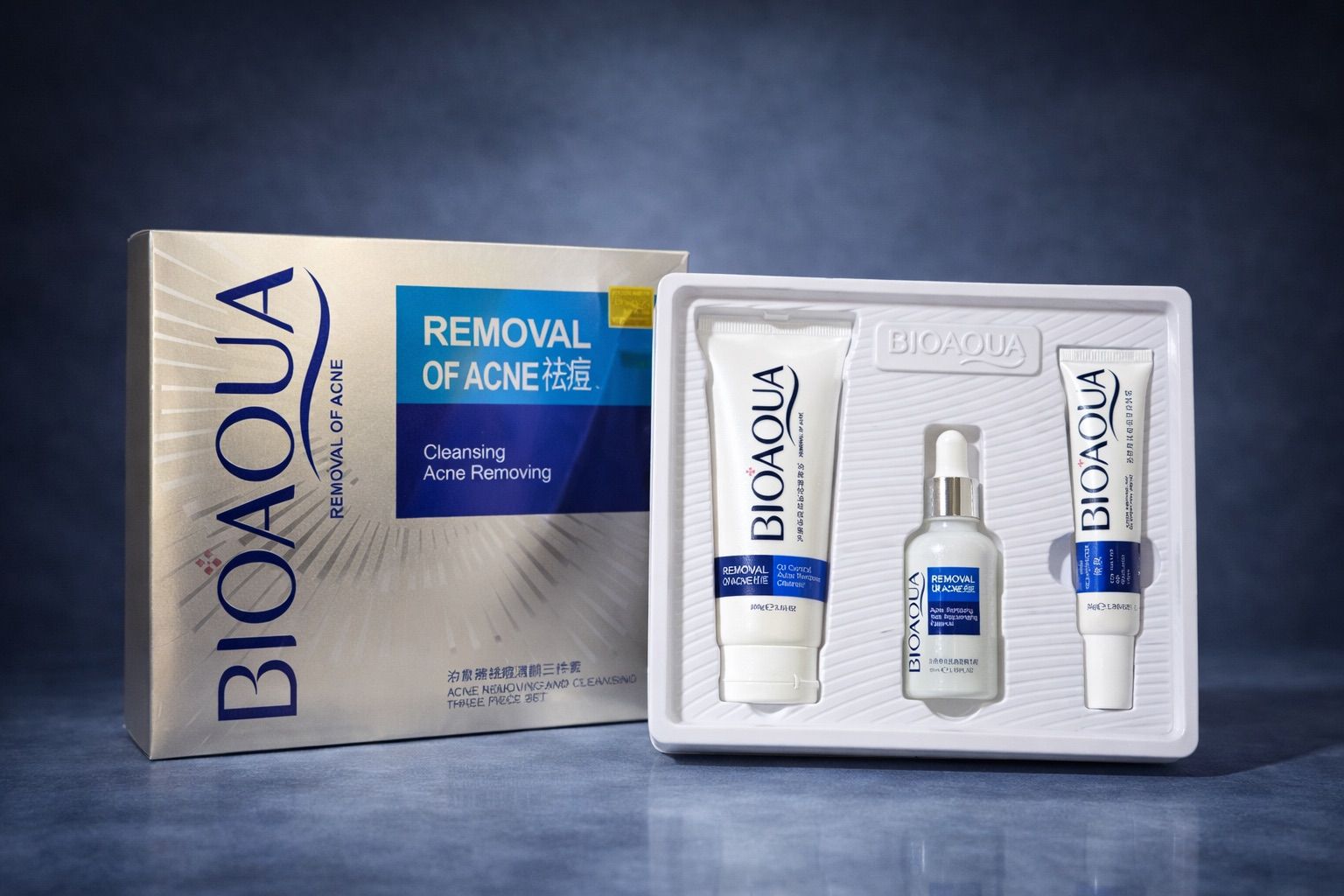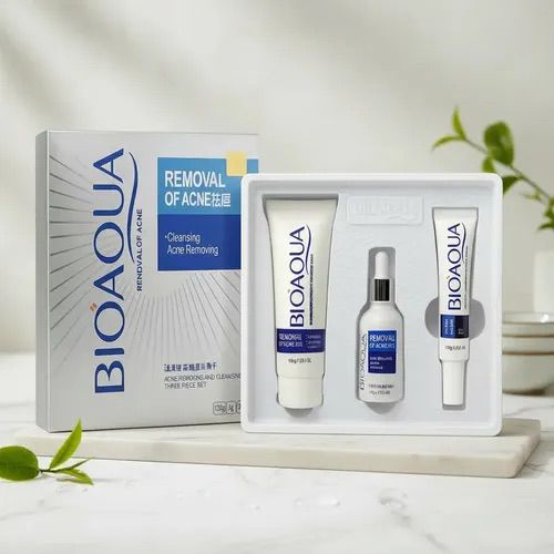 BIOAQUA – Removal of Acne (Cleansing Acne Removing Set). Es un kit facial antiacné diseñado para limpiar profundamente la piel, controlar la grasa y ayudar a reducir granitos e imperfecciones.