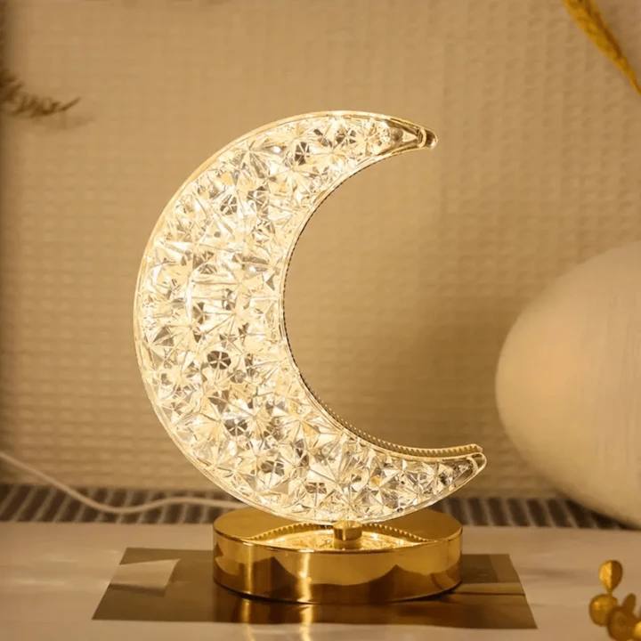 Estructura metálica fina que sostiene una luna creciente y una estrella brillante, creando una silueta encantadora que decora incluso cuando está apagada.