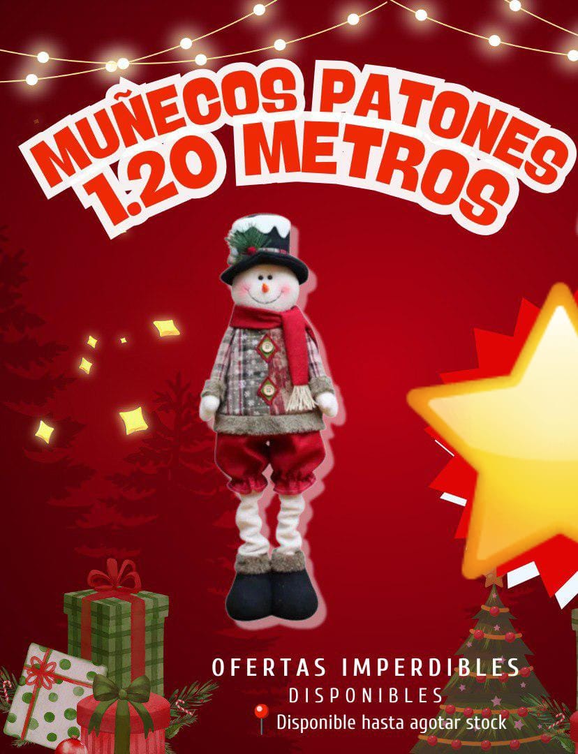 Estos increíbles muñecos navideños de patas largas son el complemento perfecto para darle un toque cálido, divertido y elegante a tu hogar esta Navidad. Con su tamaño de 1.20 metros, destacan en cualquier rincón y se convierten en el protagonista de tu decoración.