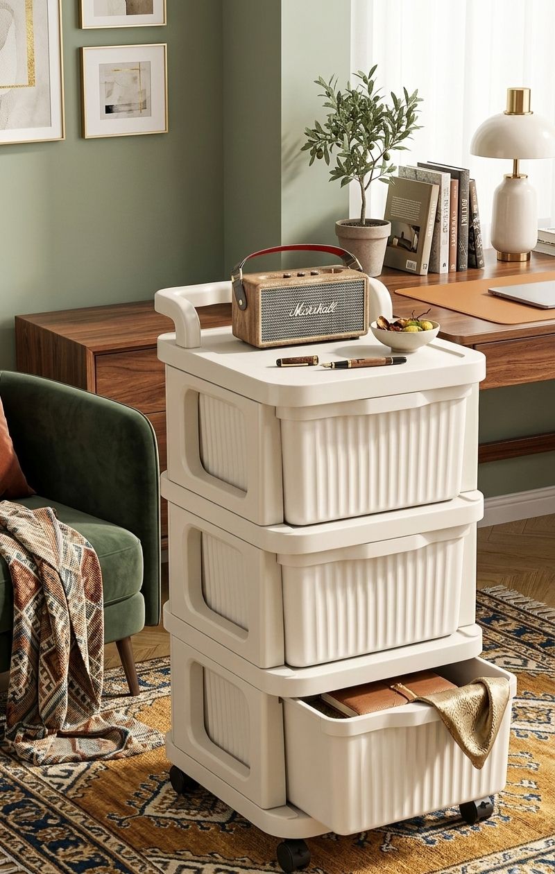 Transforma el caos en orden con nuestro carrito multifuncional de diseño minimalista. No es solo un mueble de almacenamiento, es una pieza diseñada para durar y adaptarse a tu ritmo de vida.