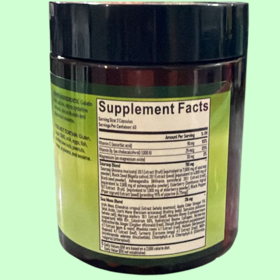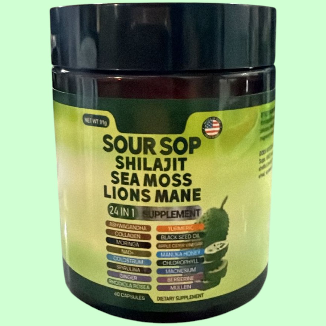 ✅ Fórmula de 24 ingredientes naturales, incluyendo Soursop, Shilajit, Sea Moss y Lion's Mane
