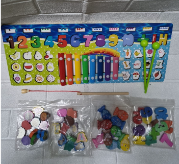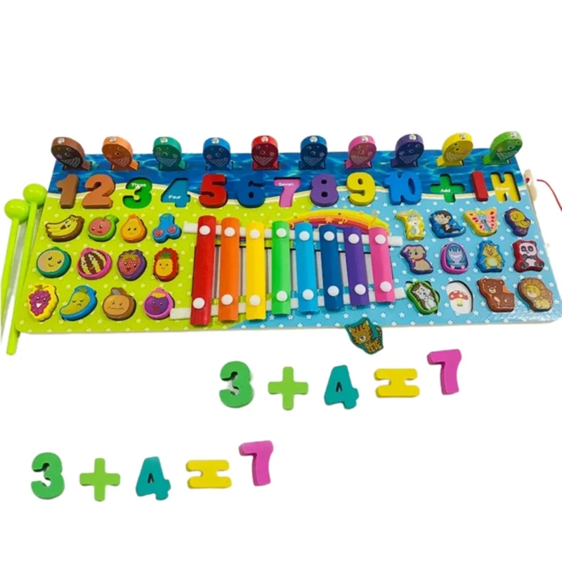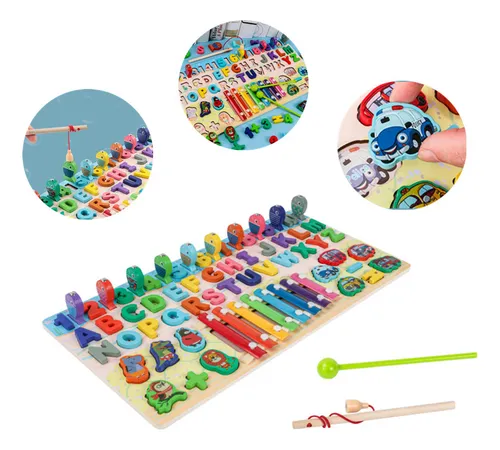 Multifuncional: Incluye un xilófono, juego de pesca magnética, clasificación de formas por color y reconocimiento de números.