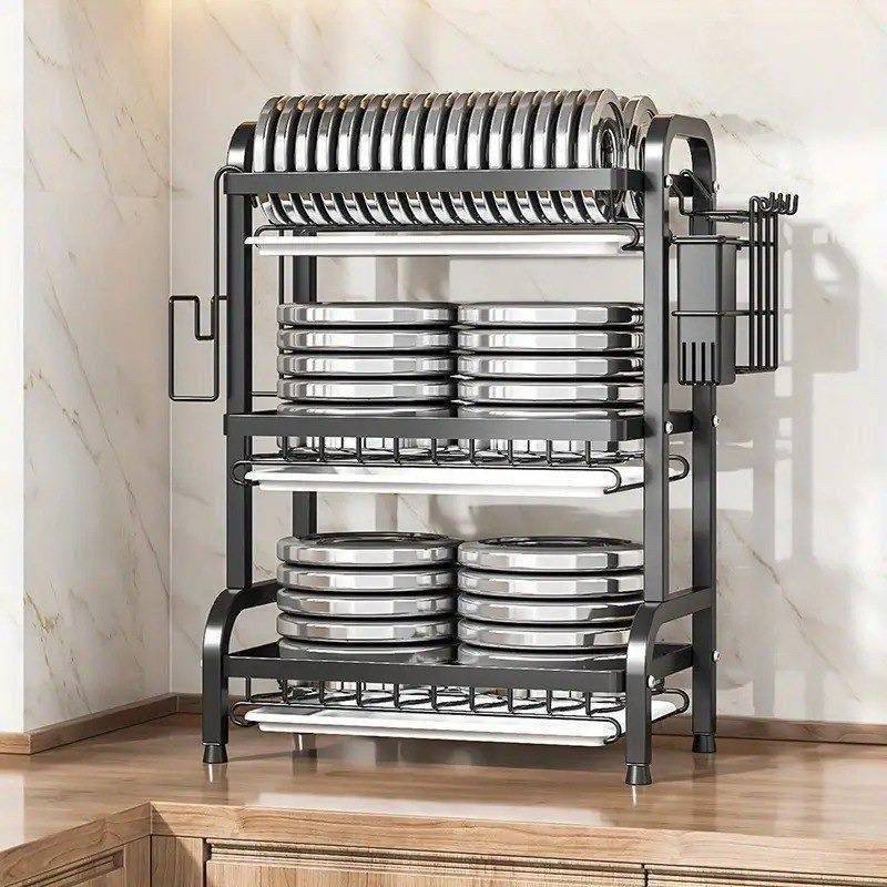 Capacidad XL en Tres Niveles: Gracias a su diseño inteligente de tres pisos, puedes organizar platos de diferentes tamaños en el nivel superior, tazas y boles en el nivel medio, y ollas o utensilios más grandes en la base. Esta separación evita el apilamiento desordenado y reduce el riesgo de roturas.